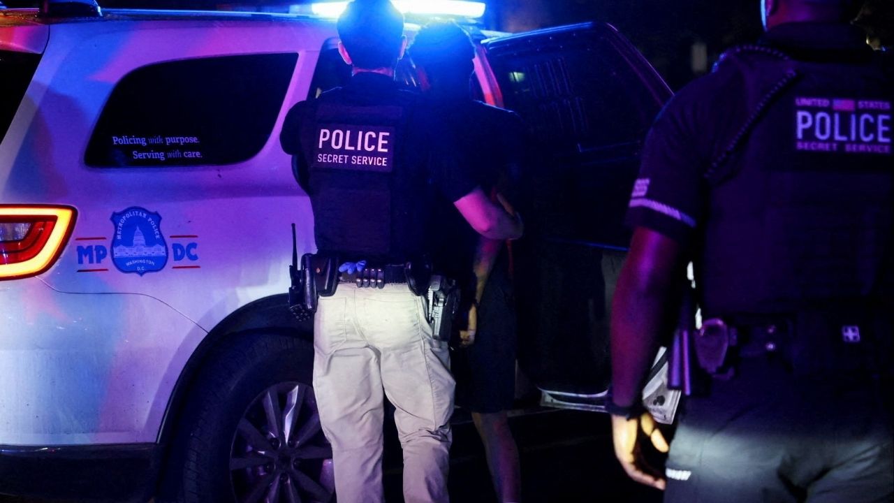 Police detain a person in the Brightwood neighborhood after U.S. President Donald Trump's announcement of the federal takeover of the Metropolitan Police Department under the Home Rule Act and the deployment of the National Guard to assist in crime prevention in the nation's capital, in Washington, D.C., U.S., August 14, 2025. (Reuters File)