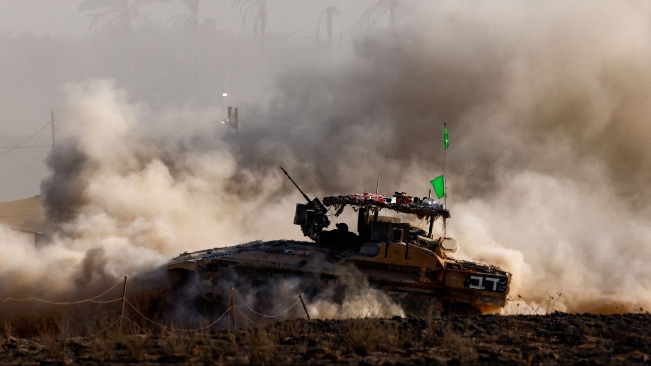 An Israeli armored personnel carrier (APC) maneuvers on the Israeli side of the border with Gaza, Israel August 19, 2025. (Reuters File)
