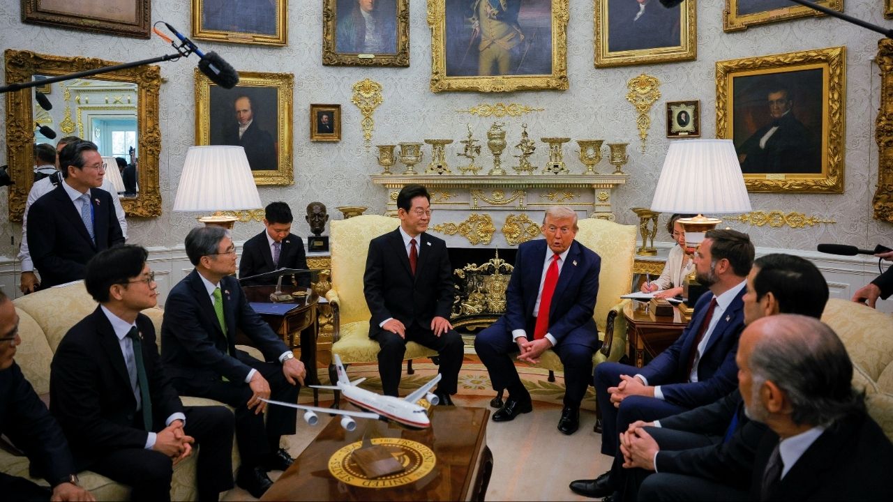 U.S. President Donald Trump meets with South Korean President Lee Jae Myung at the Oval Office, at the White House, in Washington, D.C., U.S., August 25, 2025. (Reuters/Brian Snyder)