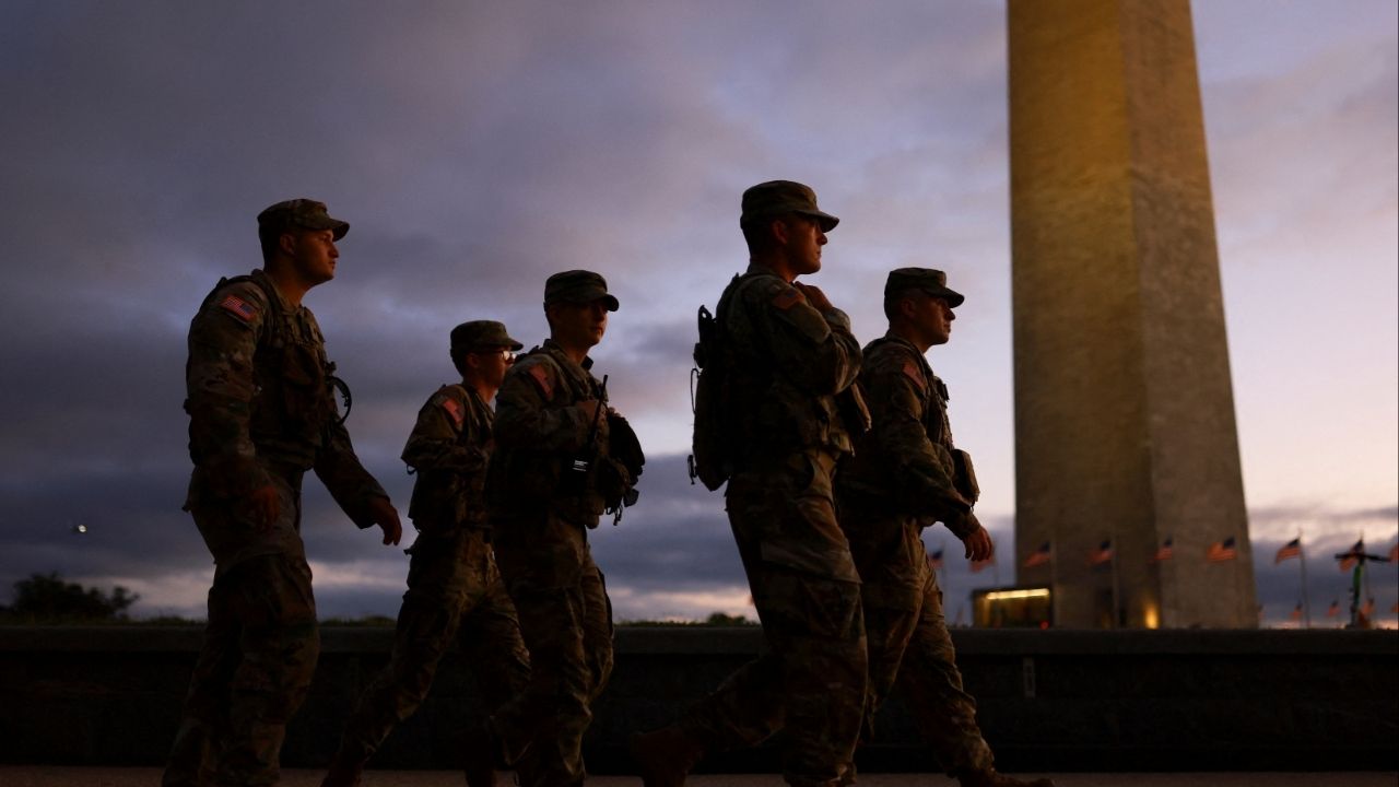 Members of the National Guard walk at the National Mall after U.S. President Donald Trump deployed National Guard troops and ordered an increased presence of federal law enforcement to assist in crime prevention, in Washington, D.C., U.S., August 21, 2025. (Reuters File)