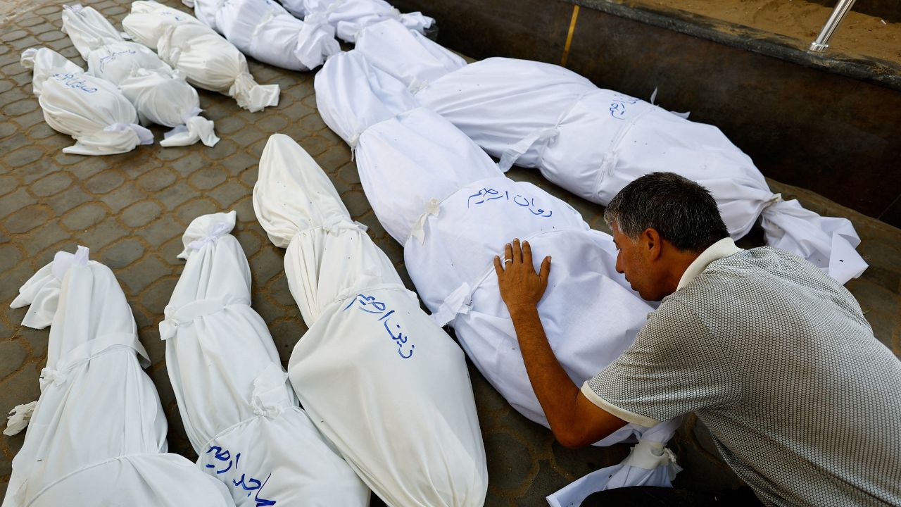 A mourner reacts during a funeral for Palestinians killed in an overnight Israeli strike, according to medics, in Gaza City Aug. 11, 2025. (Reuters/Mahmoud Issa)