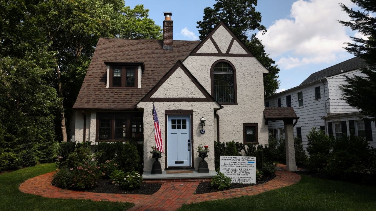A Town of North Hempstead building permit stands in front of a home on the North Shore of Long Island city of Manhasset, New York, U.S., August 13, 2025. (Reuters File)