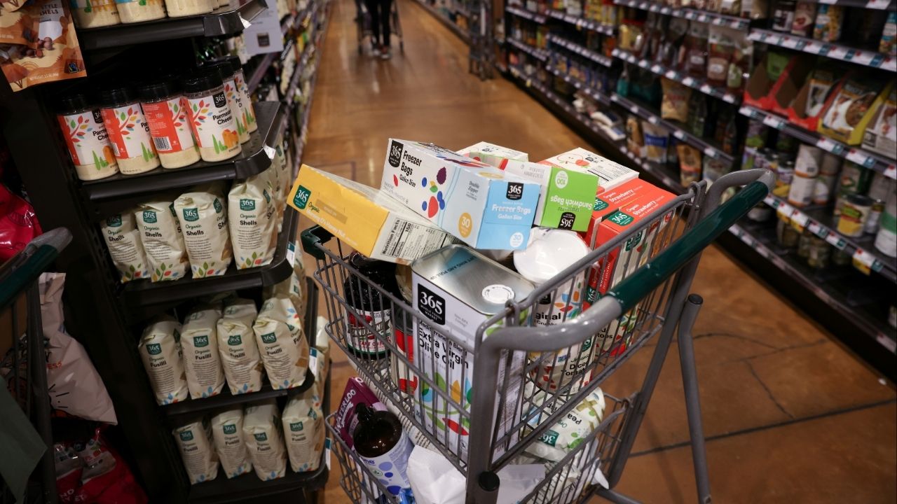 A shopping cart is seen in a supermarket in Manhattan, New York City, U.S., June 10, 2022. (Reuters File)