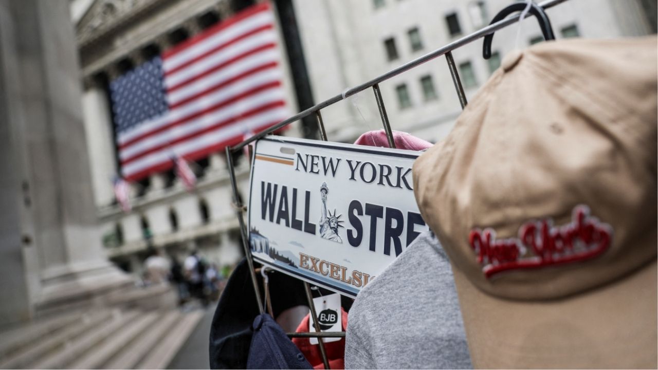 A Wall Street plate is seen on a street vendor stall outside the New York Stock Exchange (NYSE) in New York City, U.S., July 11, 2025. (Reuters/Jeenah Moon)