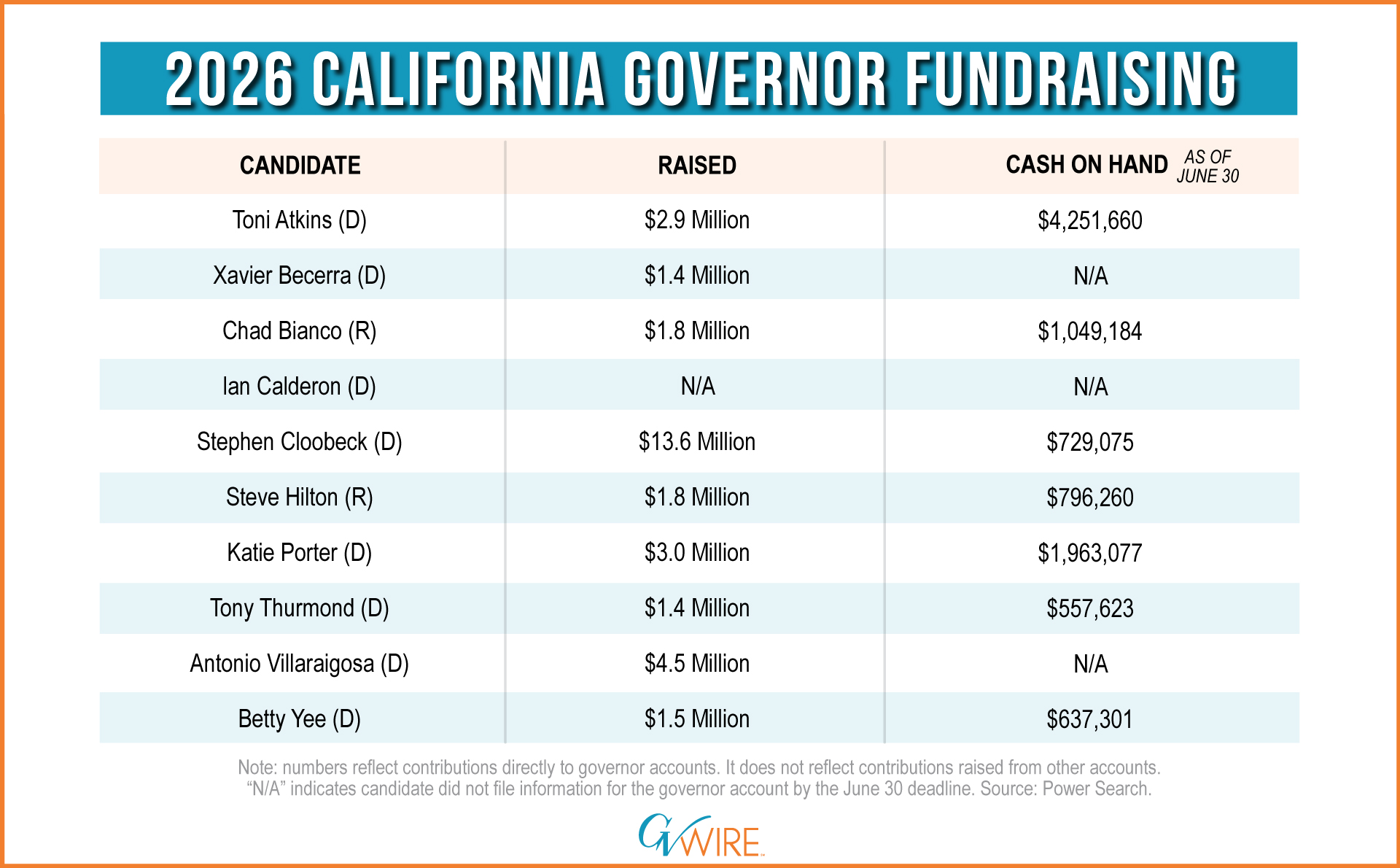 Of the major candidates, Villaraigosa has raised $4.5 million according to the Secretary of State’s Power Search website. Billionaire Stephen Cloobeck, a Southern California Democrat, raised $13 million, largely from his own coffers.