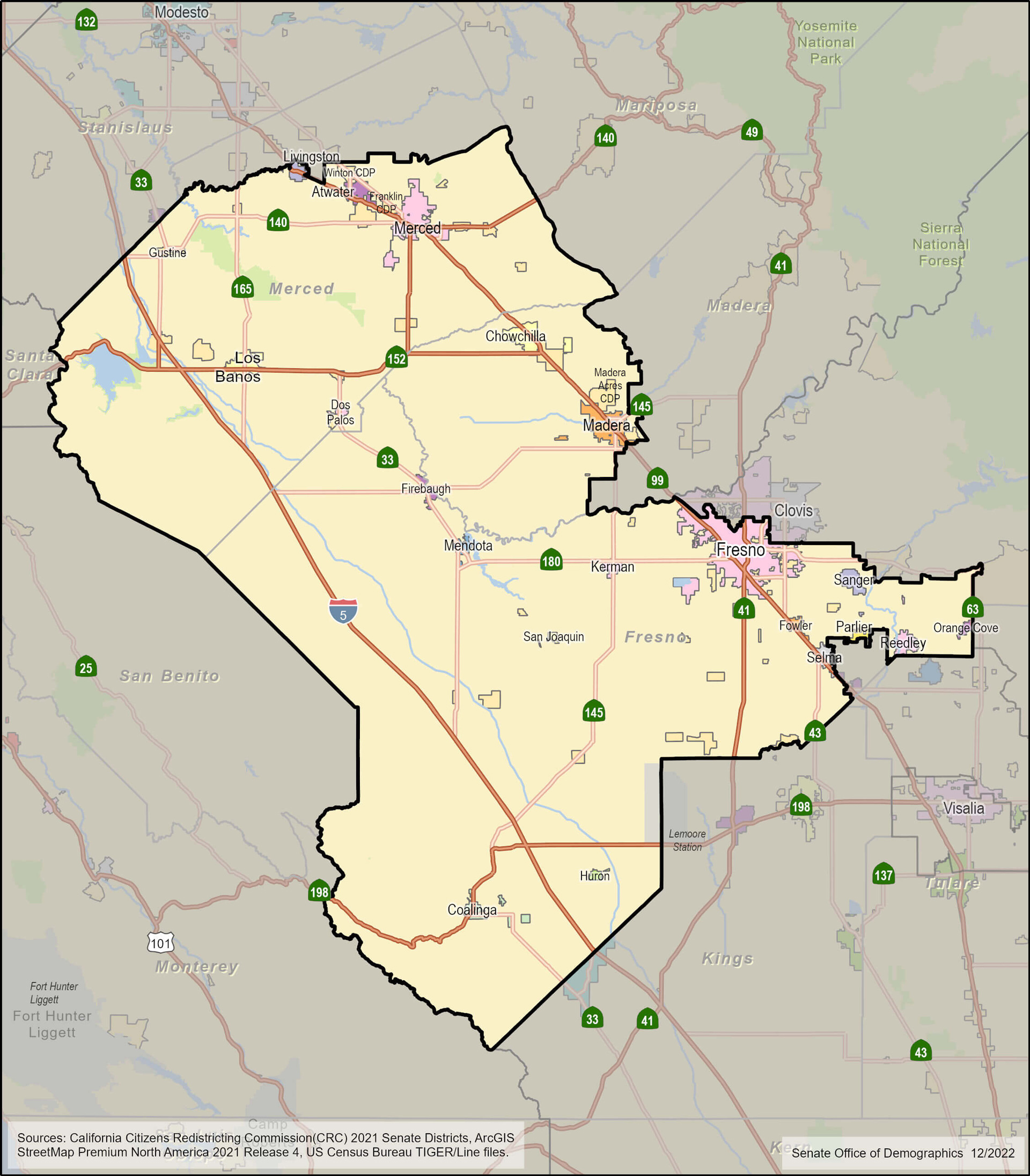 Senate District 14 includes parts of Fresno, Madera and Merced counties, including most of the city of Fresno. Current Sen. Anna Caballero, D-Merced, is term-limited.