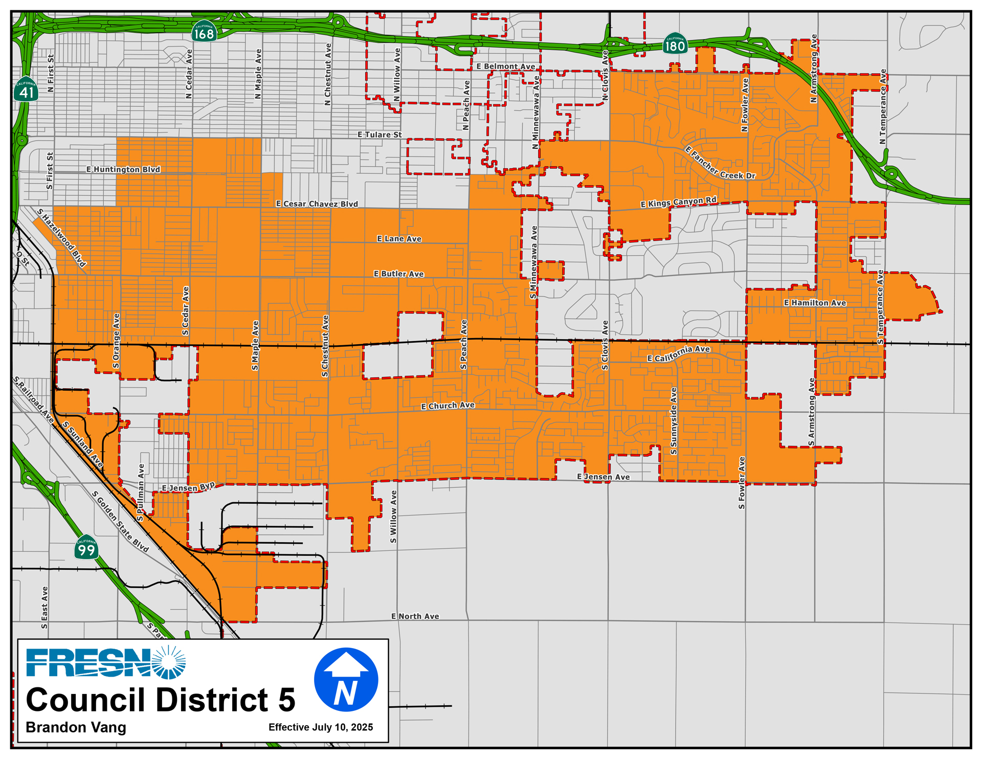 District 5 covers the southeastern part of Fresno.