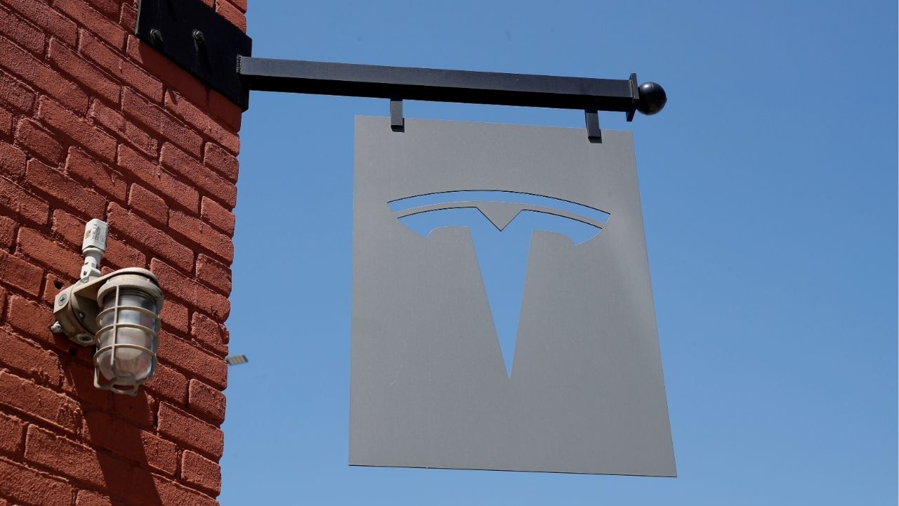 The TESLA logo is seen outside a dealership in the Brooklyn borough of New York City, U.S., April 26, 2021. (Reuters File)