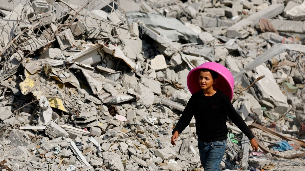 A Palestinian youth walks past the rubble of destroyed buildings, amid a ceasefire between Israel and Hamas, in Gaza City, November 2, 2025. (Reuters/Mahmoud Issa)