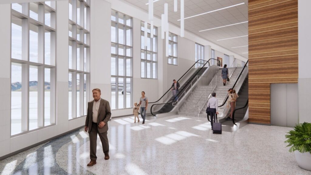 The airport project includes a new terminal, baggage handling area, an international arrival and screening area, and an already opened 900-space parking garage.
