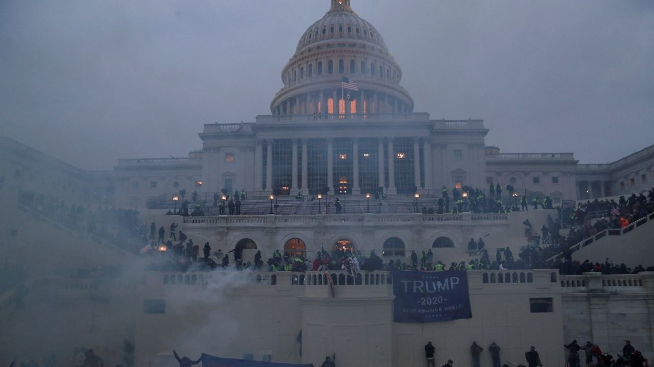 Police officers stand guard as supporters of U.S. President Donald Trump gather in front of the U.S. Capitol Building in Washington, U.S., January 6, 2021. (Reuters/Leah Millis)