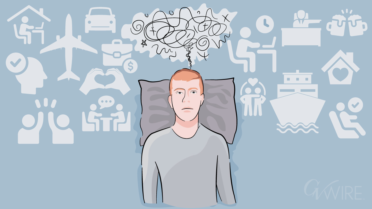 Millennials are using their paid time off just to catch up on sleep, reflecting an economy and work culture so demanding that rest has become a rare luxury. (GV Wire/Illustration/Paul Marshall)