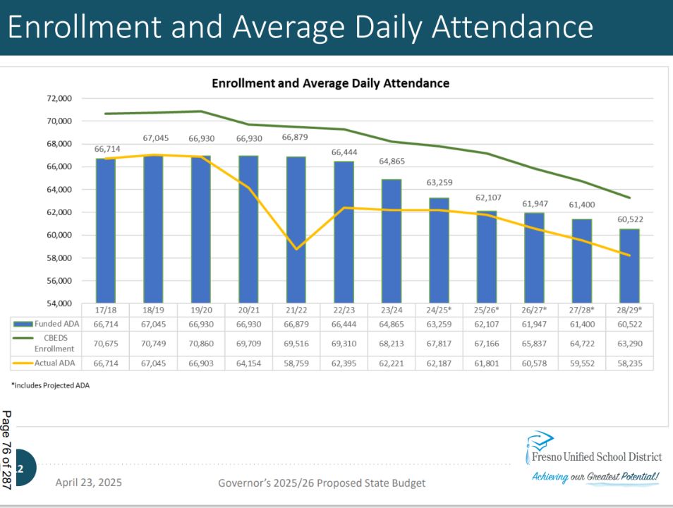 - Fresno Unified says it may have to close between three and five schools due to declining enrollment independent of SEDA.