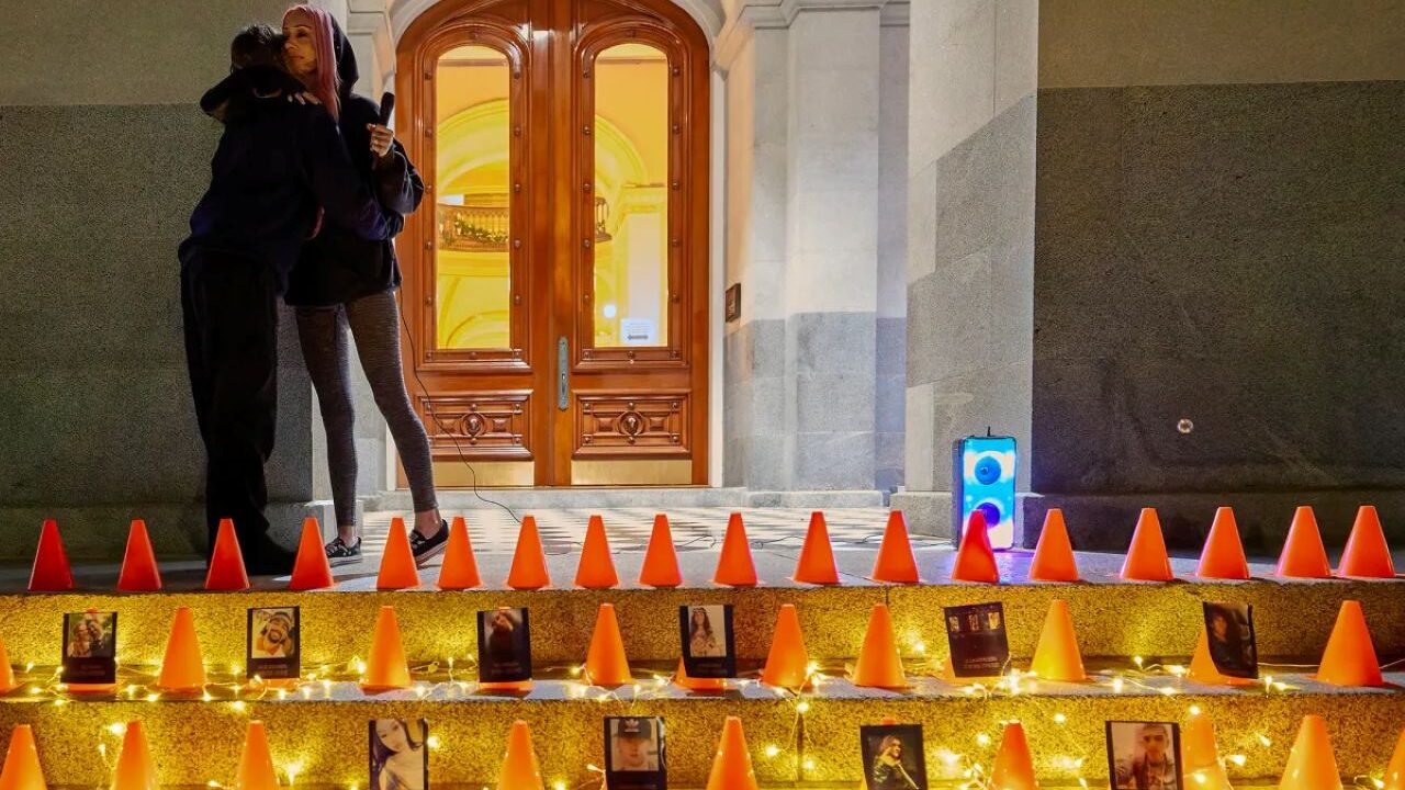 Erika Pringle, at right, embraces Allison Lyman, whose son died in a collision, during a candlelight vigil as part of The World Day of Remembrance for Road Traffic Victims at the Capitol in Sacramento, Nov. 16, (CalMatters/Fred Greaves)