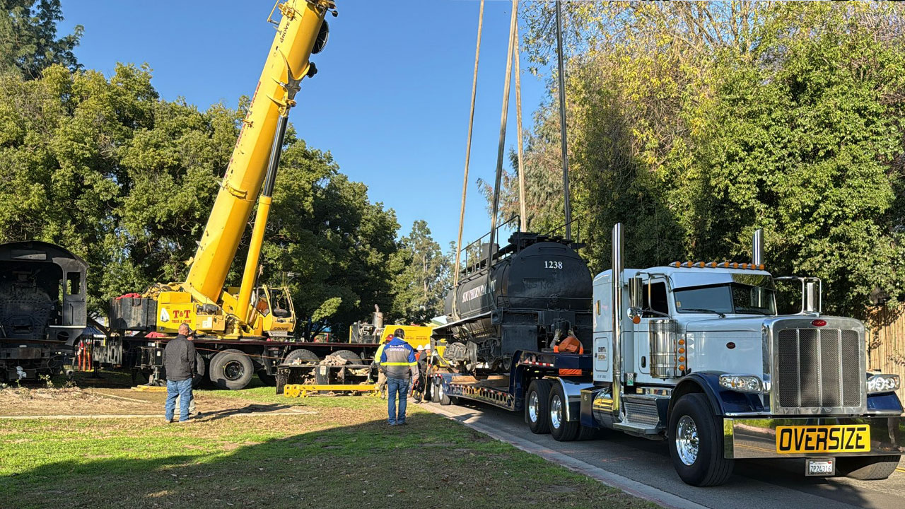 While donating the massive train engine was relatively easy, moving it became a different challenge, Roman told GV Wire. To move the 67-ton engine and accompanying tender — the 45,000-pound fuel attachment — to Kingsburg, Friends had to contract with Bakersfield T&T Truck and Crane Service.