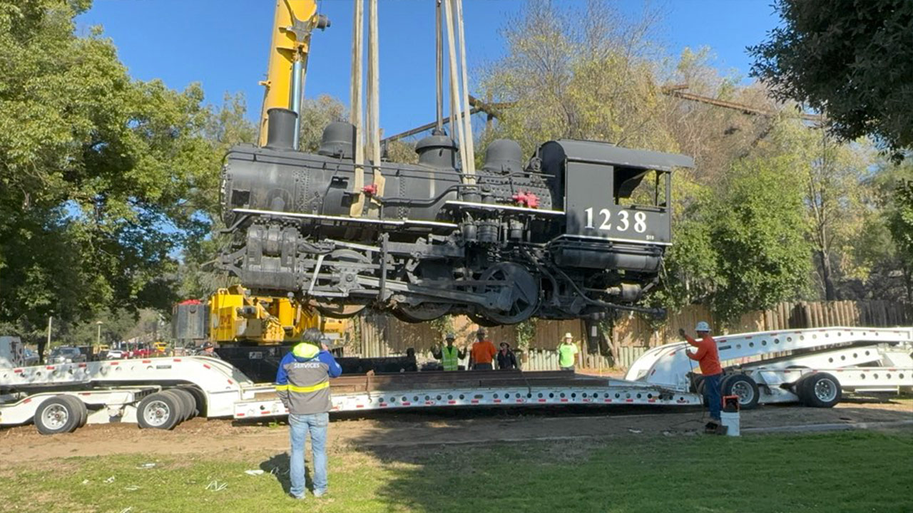Historic Southern Pacific Engine Finally Makes Move from Roeding Park to Kingsburg
