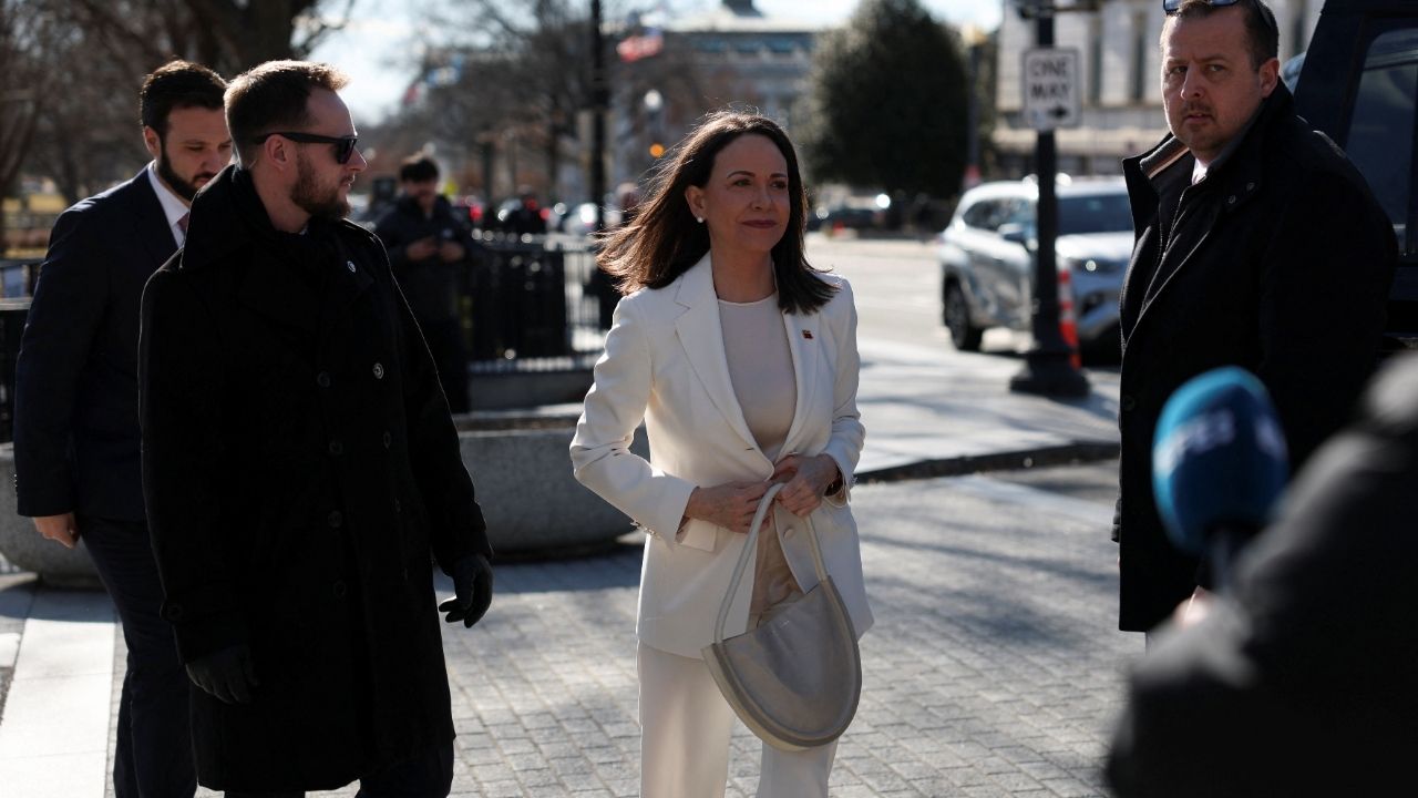 Venezuelan opposition leader Maria Corina Machado walks on the day of a meeting with U.S. President Donald Trump at the White House in Washington, D.C., U.S., January 15, 2026. (Reuters/Kylie Cooper)