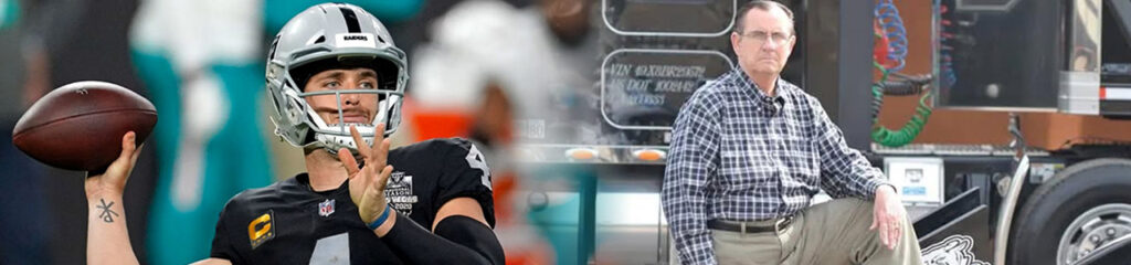 Derek Carr played for the Raiders for nine years in Oakland and Las Vegas. With the Raiders, Carr accumulated 35,222 passing yards and a passer rating of 91.8. Selected in 2014 with the 26th pick in the NFL Draft, Carr holds many Raiders franchise records, including: