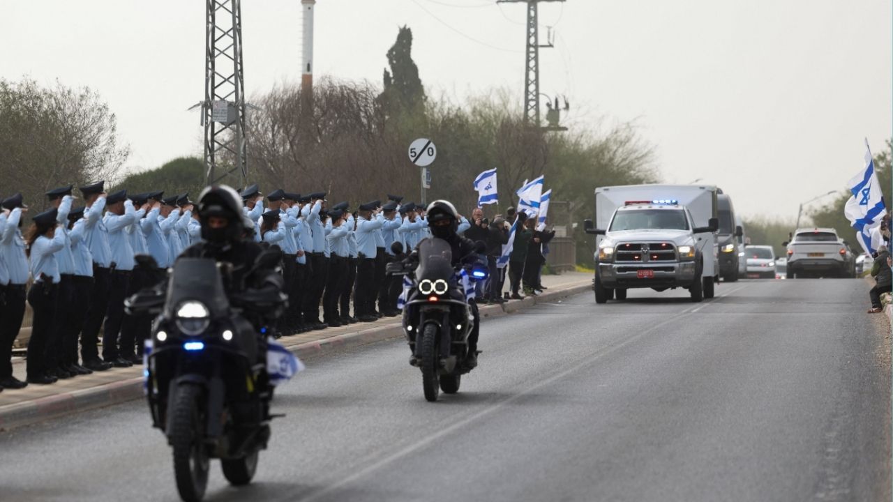 A convoy carrying the remains of the last hostage to be retrieved from Gaza, Ran Gvili, an off-duty police officer who was killed fighting militants that had infiltrated Israel during the deadly October 7, 2023, attack by Hamas, makes its way to his funeral, in Ramla, Israel, January 28, 2026. (Reuters/Nir Elias)