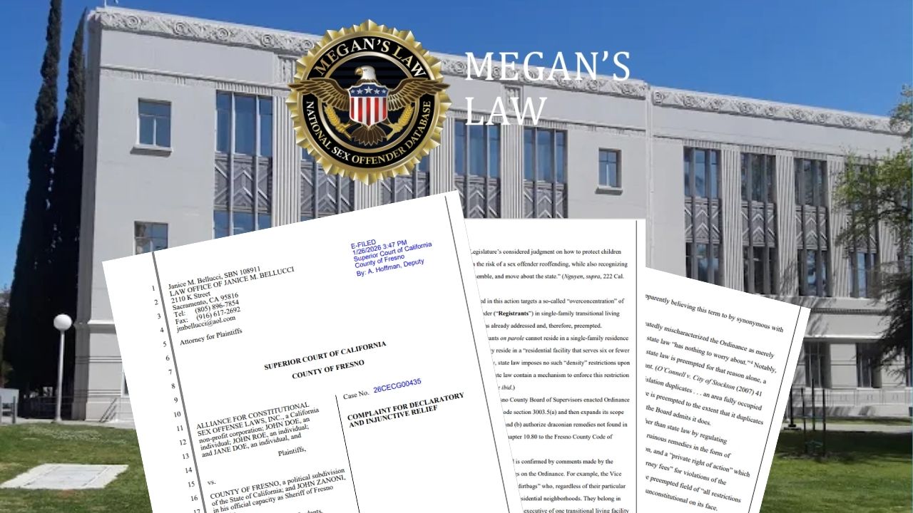 The Alliance for Constitutional Sex Offense Laws, Inc. filed the lawsuit Jan. 26 in Fresno County Superior Court, claiming the ordinance adopted Jan. 6 by the Board of Supervisors is “in plain violation of the California Constitution and the jurisdictional limits on local government.”