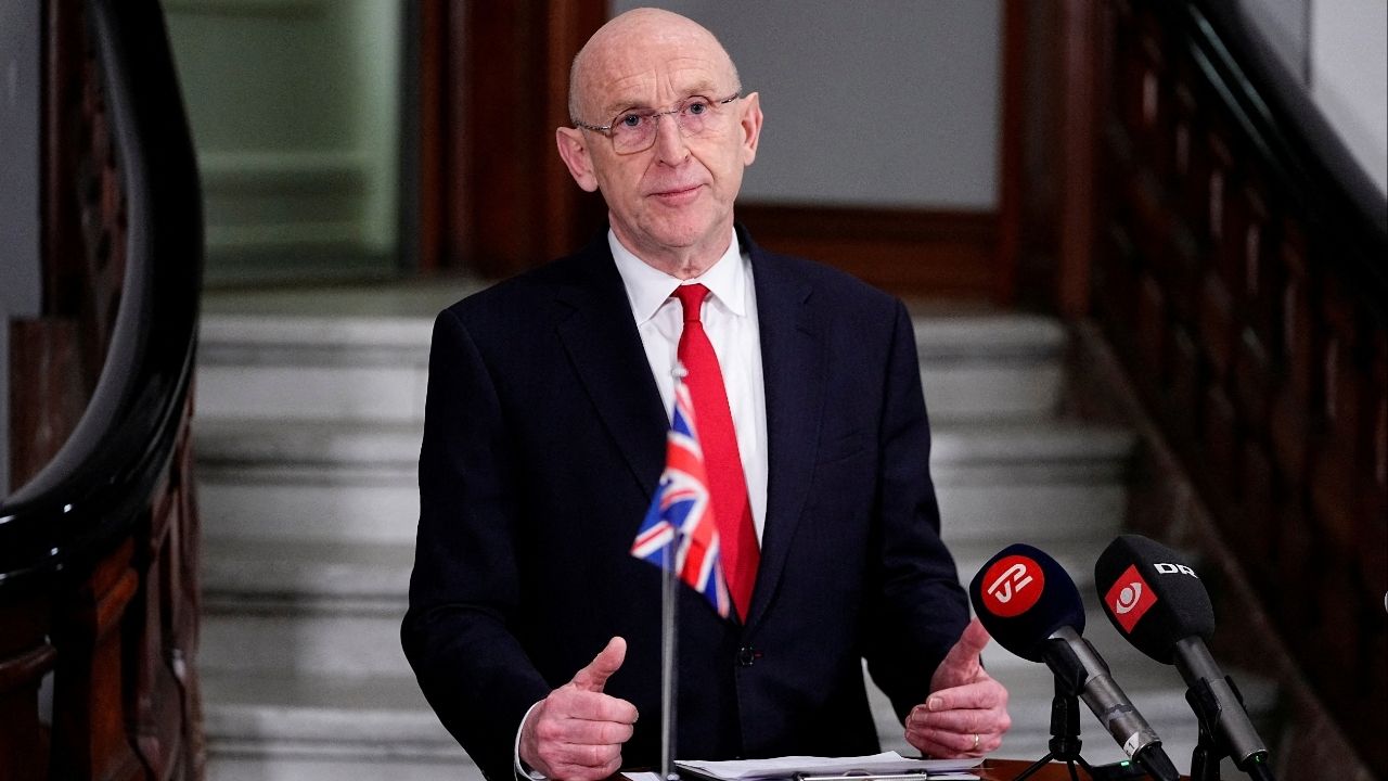 British Defense Minister John Healey attends a press conference at the Ministry of Defense in Copenhagen, January 21, 2026. (Reuters File)