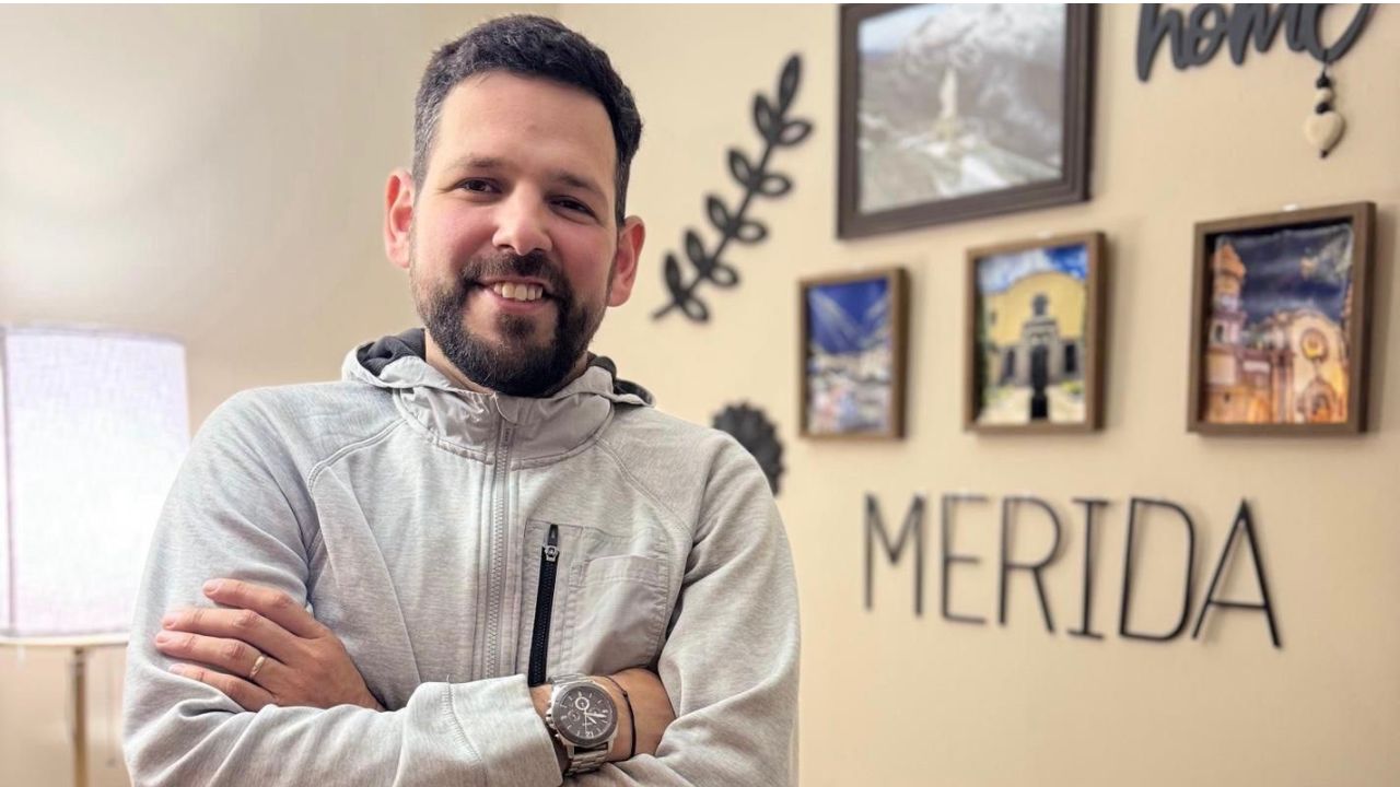 In a photo provided by family, Carlos Roberto Garcia at home in Cincinnati with moments from his Venezuelan hometown, Merida, where he was elected mayor. Garcia, who opposed the Maduro regime, fled Venezuela in 2017, claimed asylum in America, and built a new life as a delivery driver in Cincinnati. He now faces deportation back to a country with a long history of punishing political dissents. (Family photo via The New York Times)