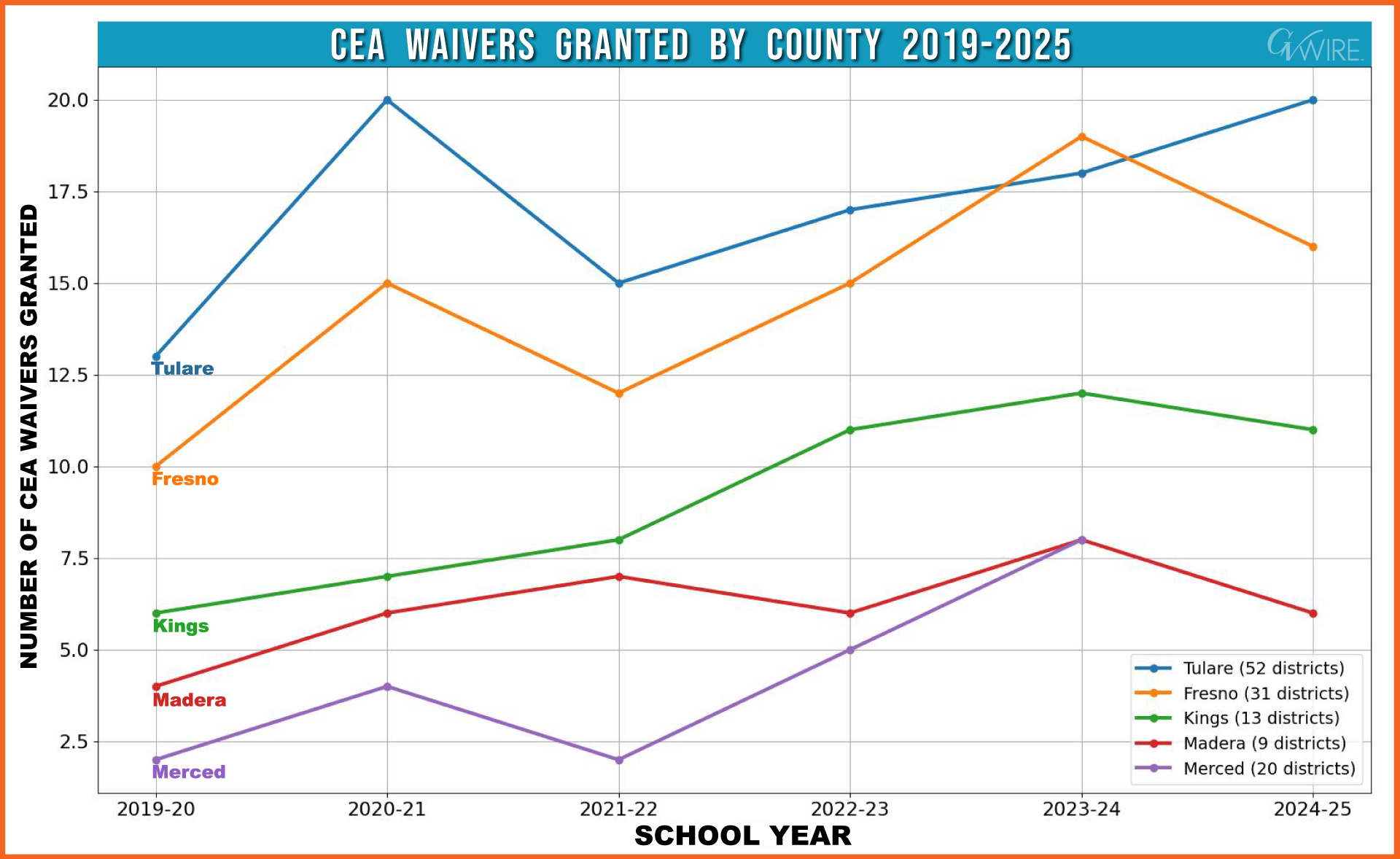 In Tulare County, 31 of the county’s 52 school districts have gotten waivers in at least one of the past six years. Five districts got waivers all six years.