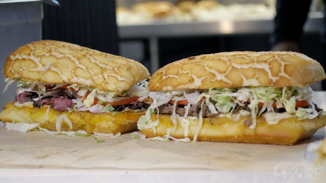 His sandwich features steak, pepper jack and honey.