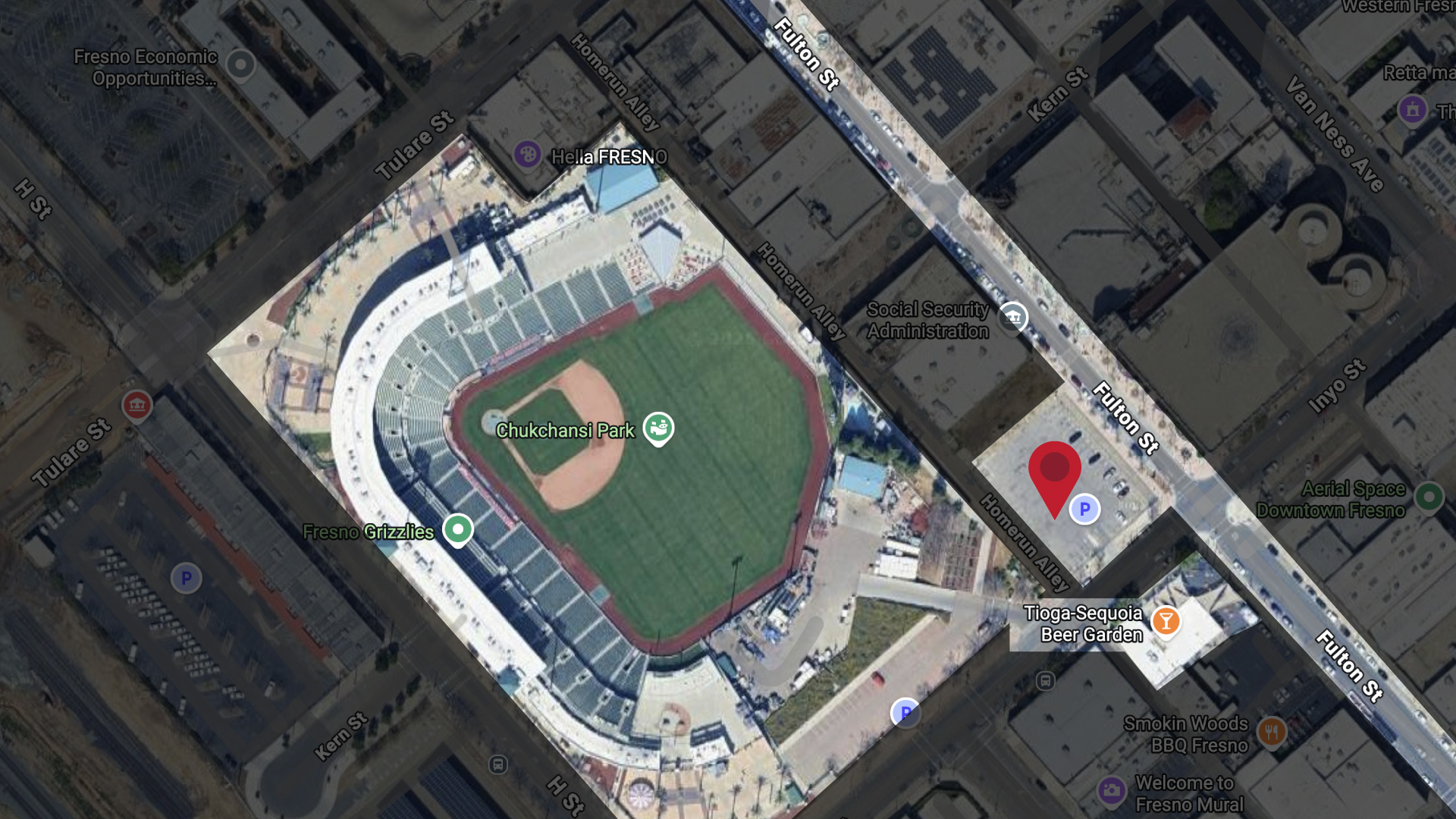 The Park at South Stadium, 815 Fulton Street. Chukchansi Park and Tioga-Sequoia Brewing are nearby. (GV Wire Composite)