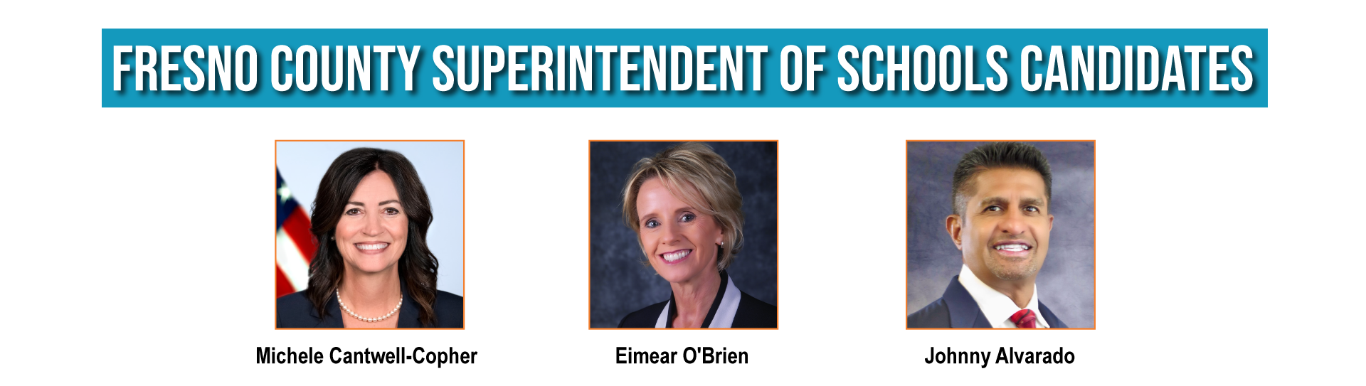 Incumbent Michele Cantwell-Copher has two challengers: former Clovis Unified and Central Unified Superintendent Eimear O’Brien and education professional Johnny Alvarado.