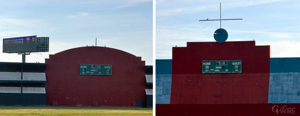 The city of Fresno is attempting to evict the nonprofit operator of the Granite Park Sports Complex. The case returns to court on Monday. The park features baseball fields, including this one with a Fenway Park motif. (GV Wire/David Taub)