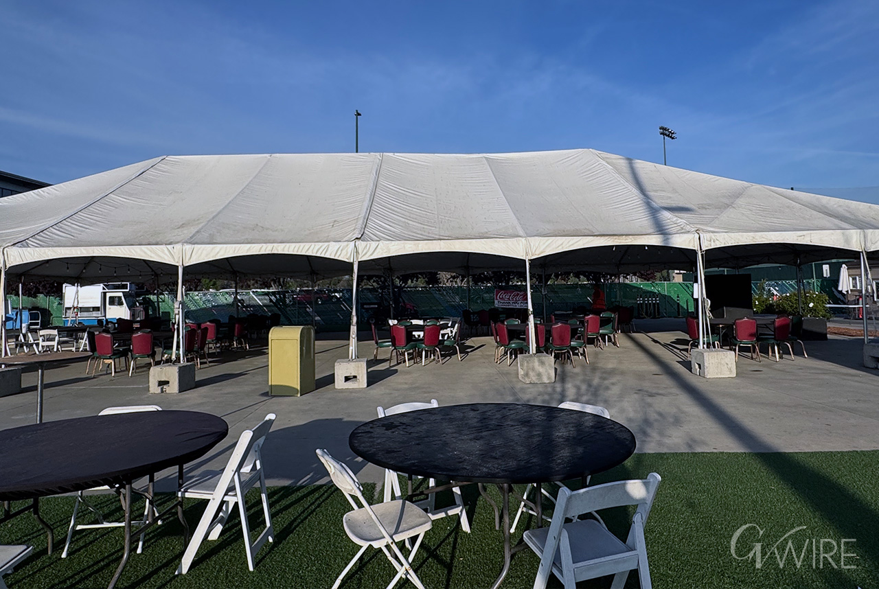 The nonprofit removed a large tent last September but received a 90-day permit in January. The tent is now back, providing shade for visitors at the snack bar. Granite Park also includes a bar.
