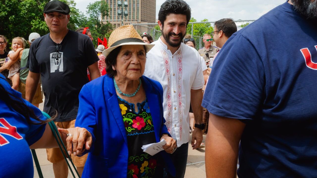 Dolores Huerta attends a protest of Republican redistricting efforts, Aug. 16, 2025, in Austin, Texas. (Desiree Rios/The New York Times/File)