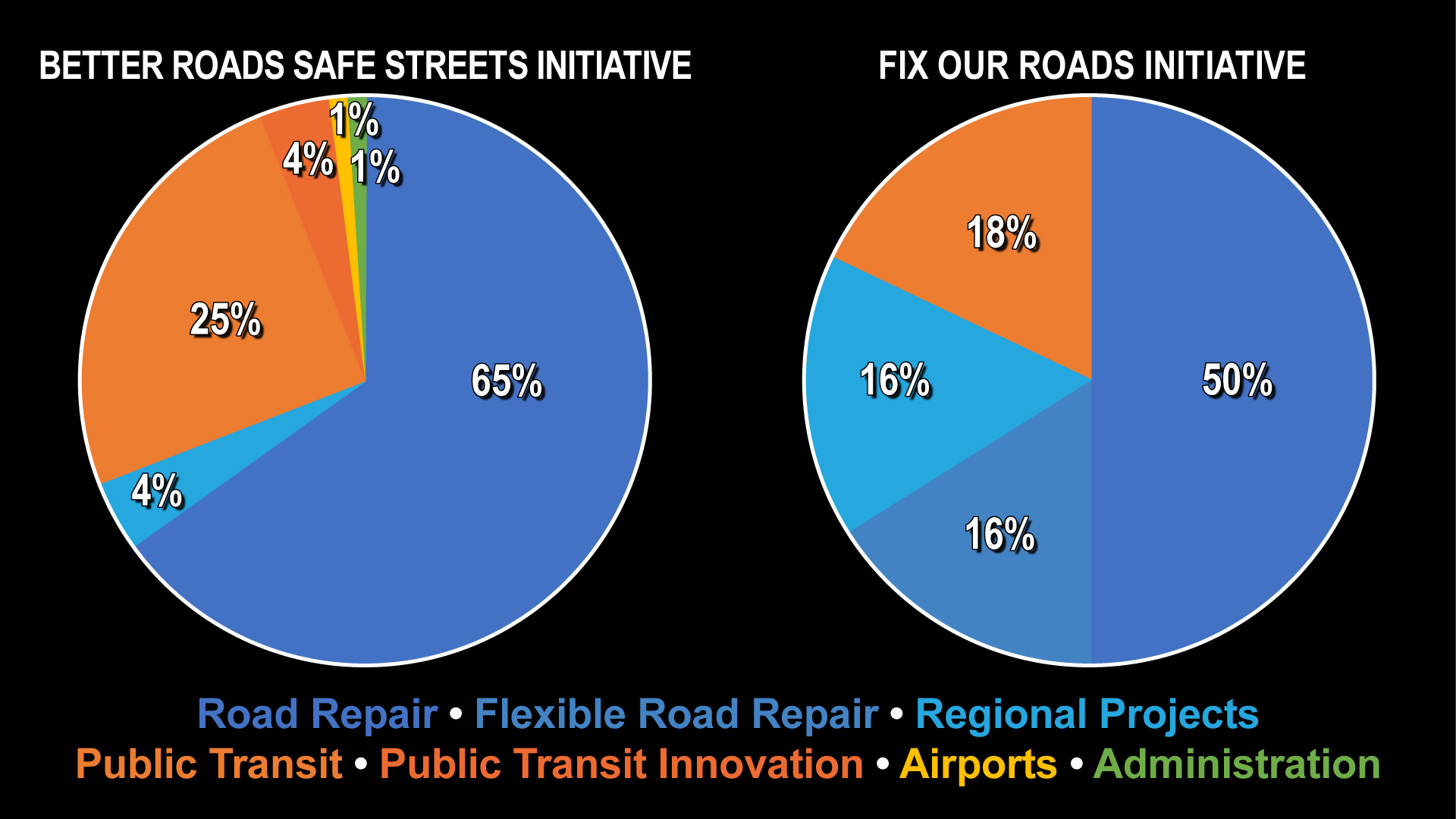 Leonardo said his group’s 20-year plan dedicates more tax money to road repair (82%) while allowing for congestion relief, something that the coalition plan restricts. He also said his group’s plan doesn’t increase spending on public transit (18%), which has not increased ridership despite millions of dollars more being dedicated to the service.