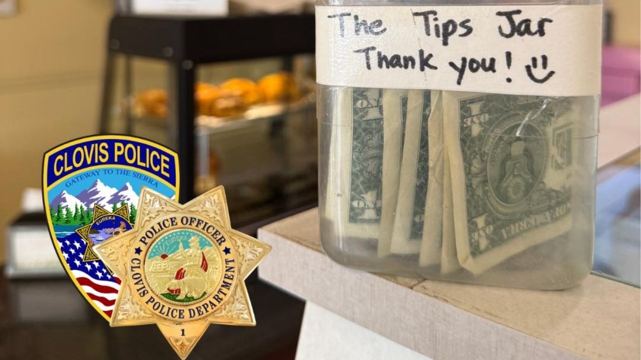 The incident happened Monday when officers were dispatched to a donut shop near Fowler and Herndon avenues after a thief took a tips jar from the counter, according to the Clovis Police Department.