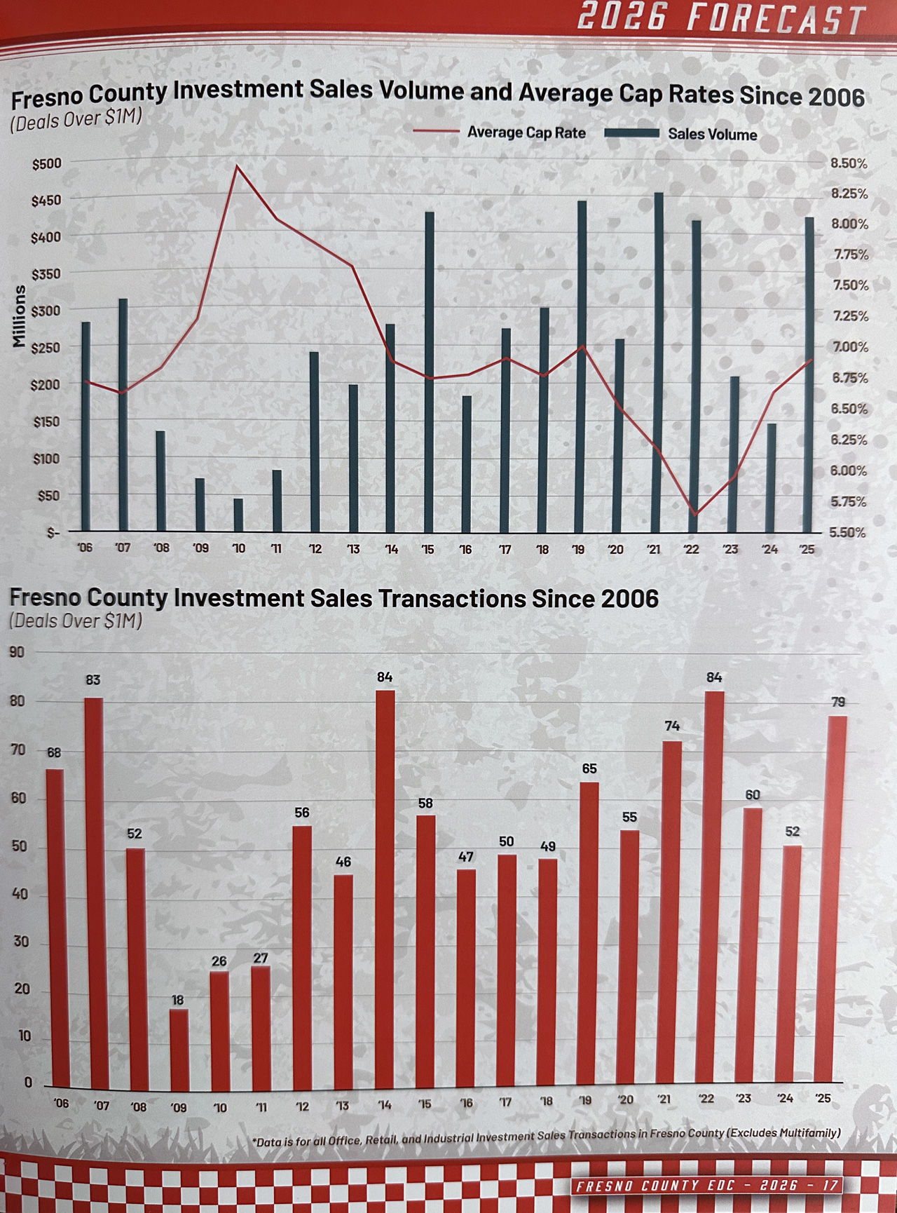 In 2025, Fresno County had 79 major real estate transactions totaling more than $400 million in sales volume. That beats 2024’s 52 transactions that stayed below $150 million.