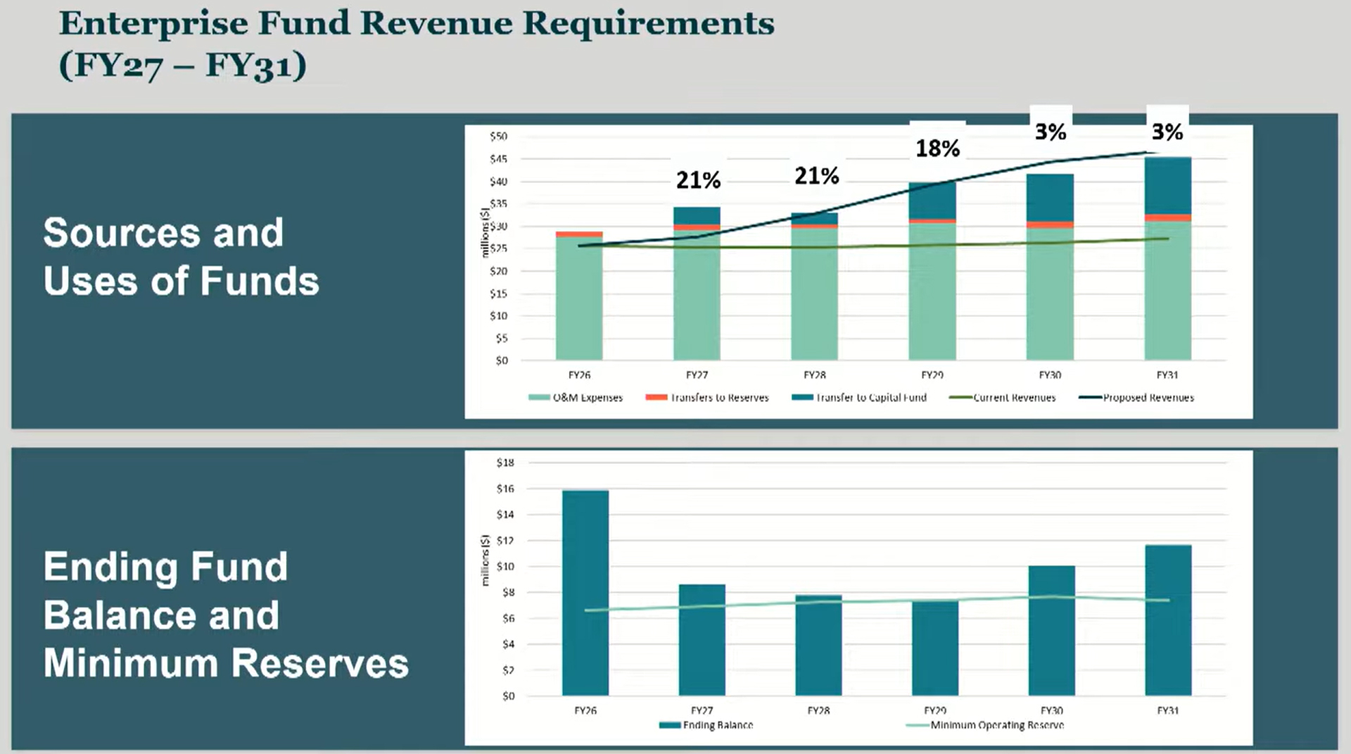 Beginning January 2027, the average water rate will go up 21%, said Kevin Tuttle, the city’s assistant public utilities director. That includes a 50% increase on service charges and a 79% increase in volume rates for the lowest water users.