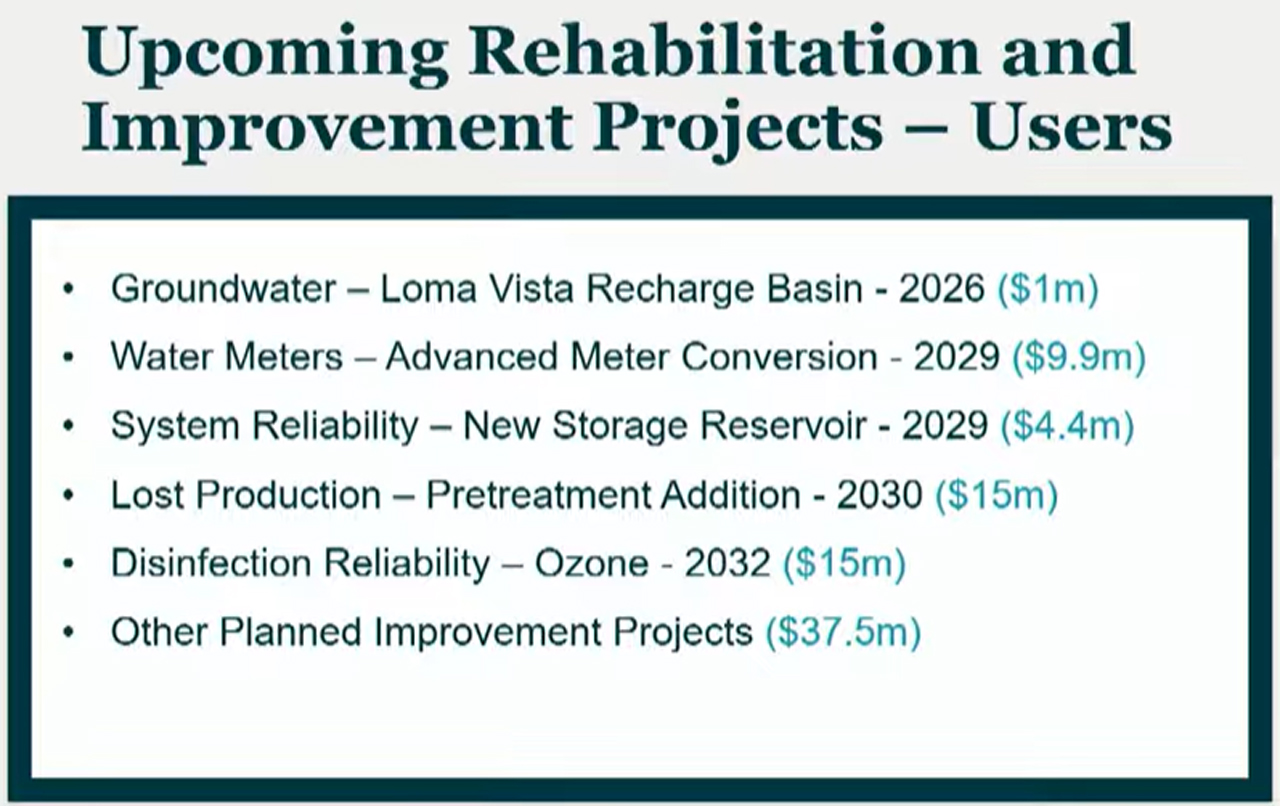 The city also has projects planned through 2032, including a $1 million recharge basin in Loma Vista this year, new water meter connections by 2029 at a price tag of $9.9 million, and a new storage reservoir by 2029 for $4.4 million.