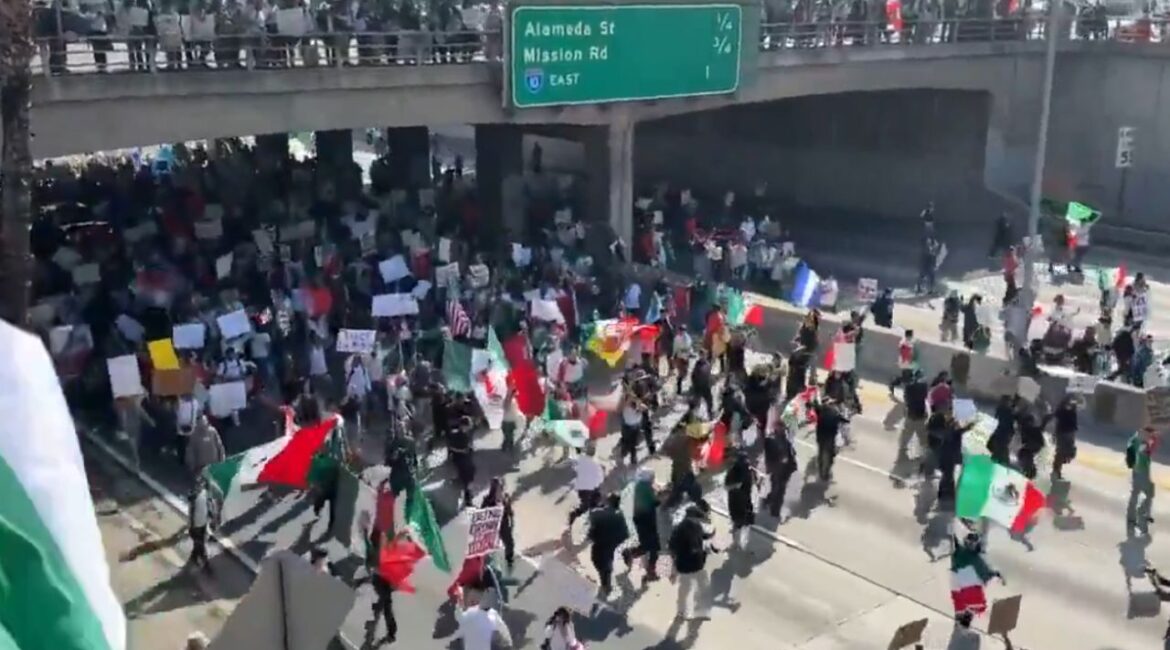 Marchers Protesting Planned Deportations Block Major Freeway in Los Angeles