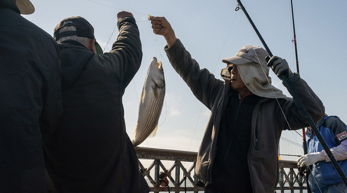 More than two dozen fishing rods were braced against the railing of San Francisco's Pier 7, their lines dangling into the Bay. People chatted on the benches, shouting in Cantonese and leaping up when one of the rods bent or jiggled. One after another, the men and women at the...