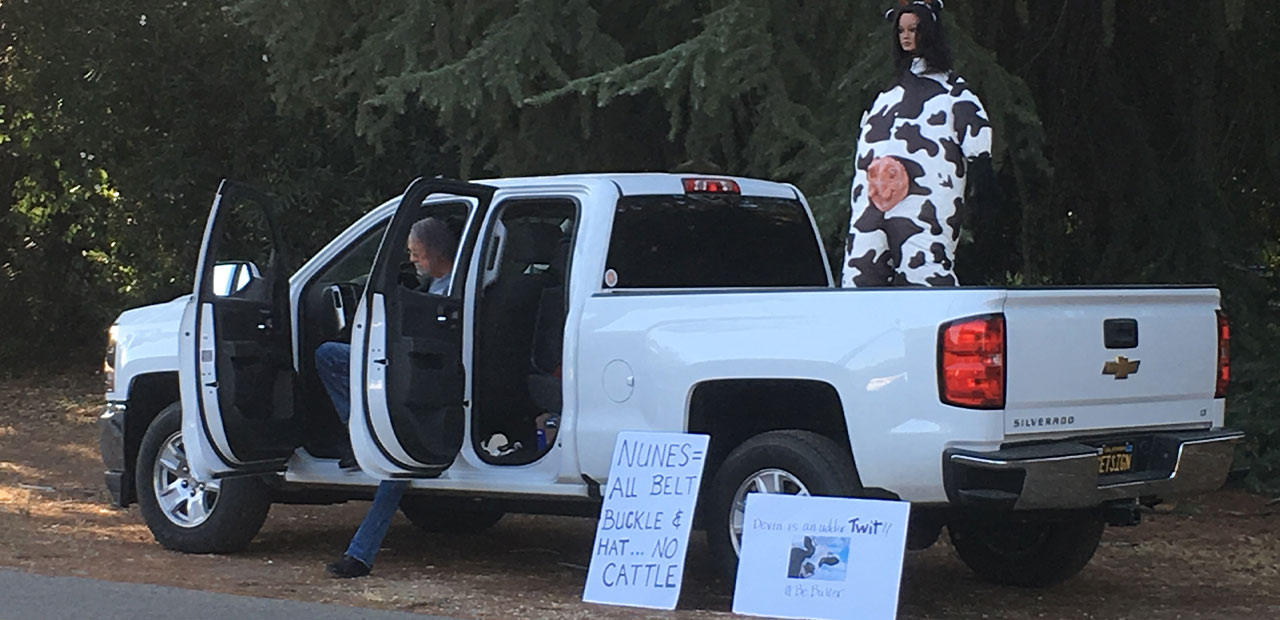 Based on the social media chatter, you would have expected herds of people protesting Rep. Devin Nunes' appearance at a Fresno County Republican Party fundraising dinner Wednesday night. But only two people showed up to express their dissatisfaction with the congressman for the 22nd District of California. The three reporters...