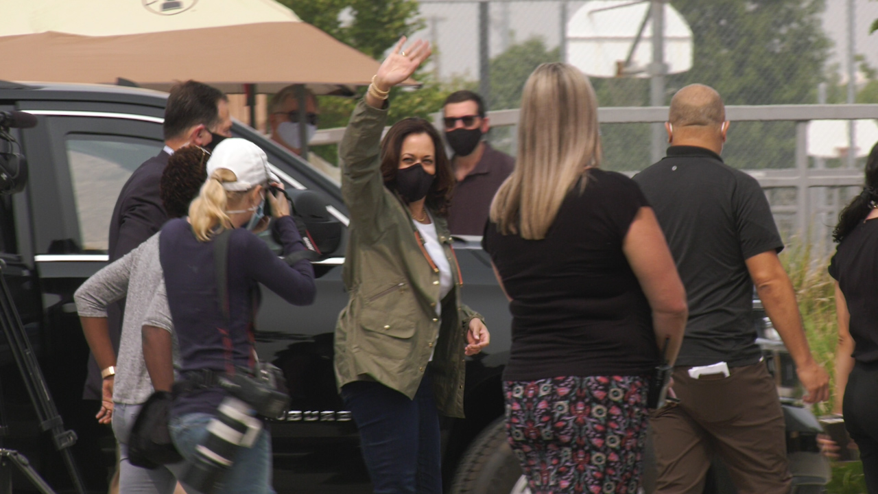 Update: 3:45 p.m., Tuesday, Sept. 15 Democratic vice-presidential candidate Sen. Kamala Harris and Gov. Gavin Newsom arrived at Clovis North High School at about 1:40 p.m. Tuesday. While there, they bumped elbows with American Red Cross of Central California volunteers who are helping Creek Fire evacuees. A campus gym has...