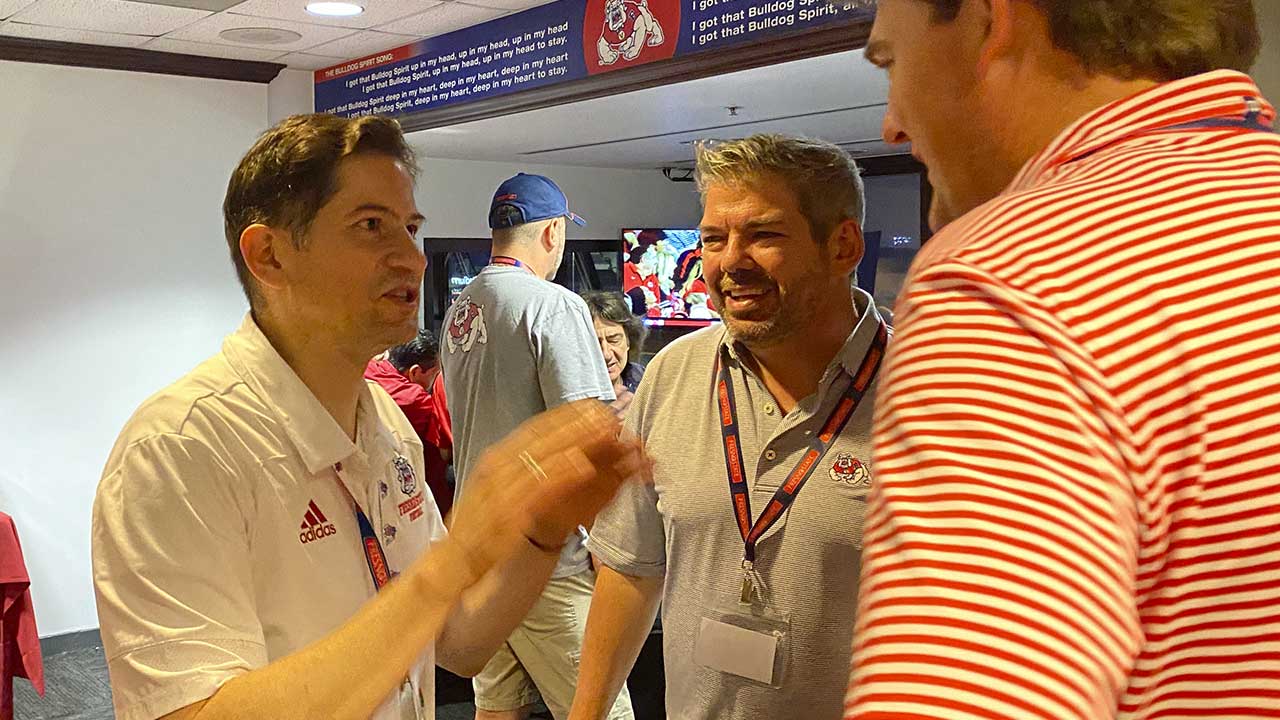 Tending to 30 guests at a time, does Fresno State president Saúl Jiménez-Sandoval have a chance to watch the football game? "I don't get to watch a lot of the game, but I do get to watch the touchdowns. When the crowd goes wild, then I go and see...
