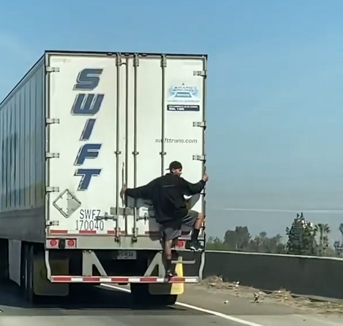 Man Seen Riding on Back of Semi Truck on Hwy. 99 in Bakersfield
